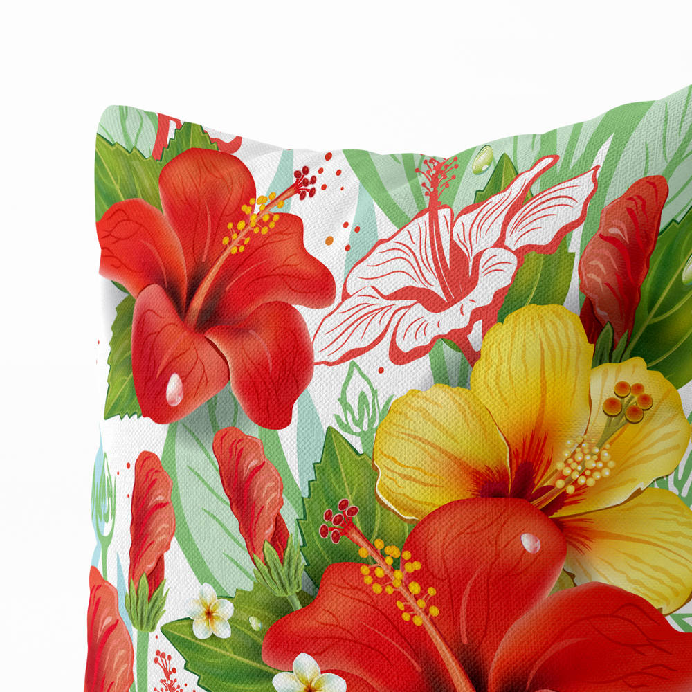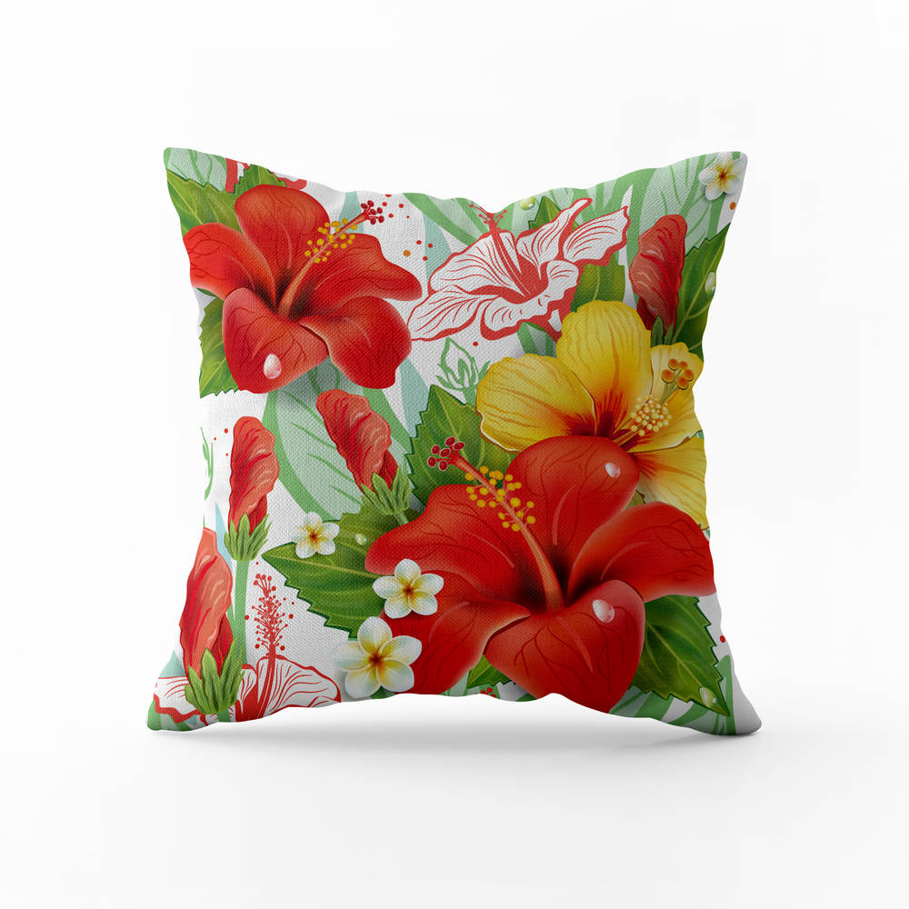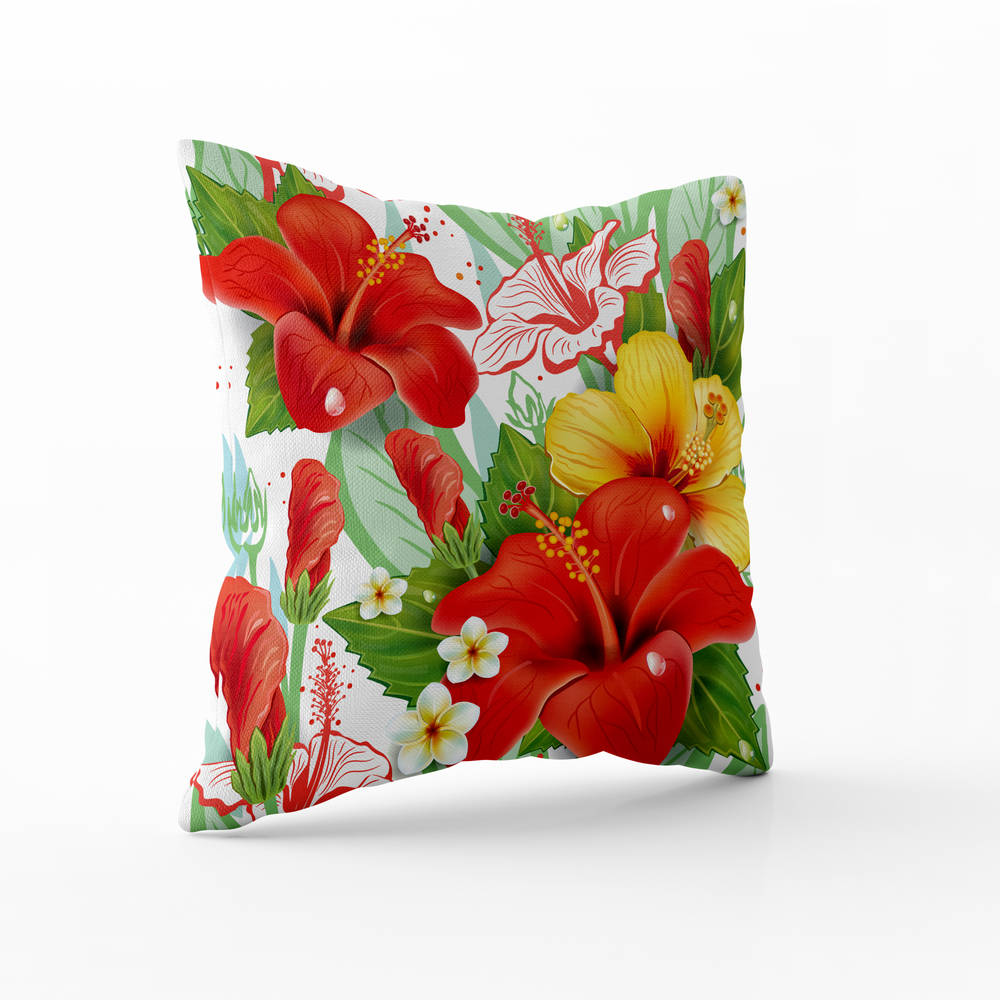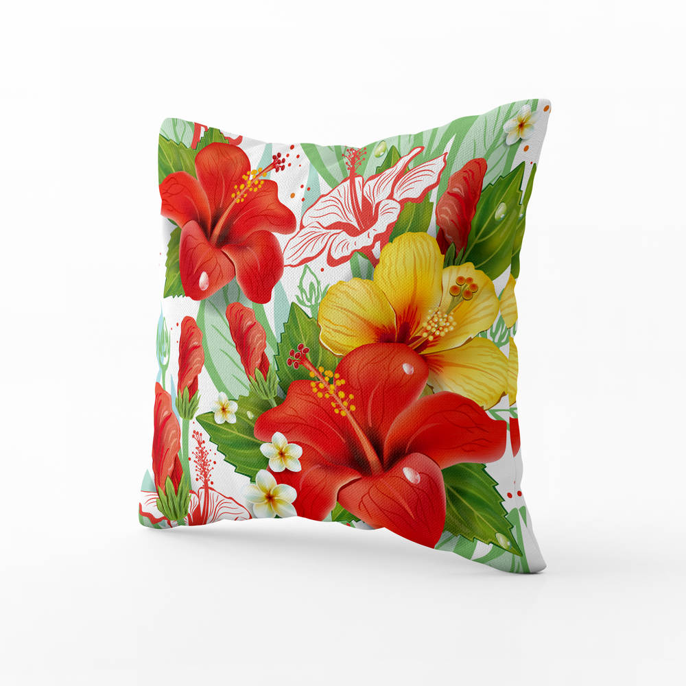 - Polštář s červeným ibiškem vnese do interiéru květinovou energii, exotickou krásu a výrazný styl.