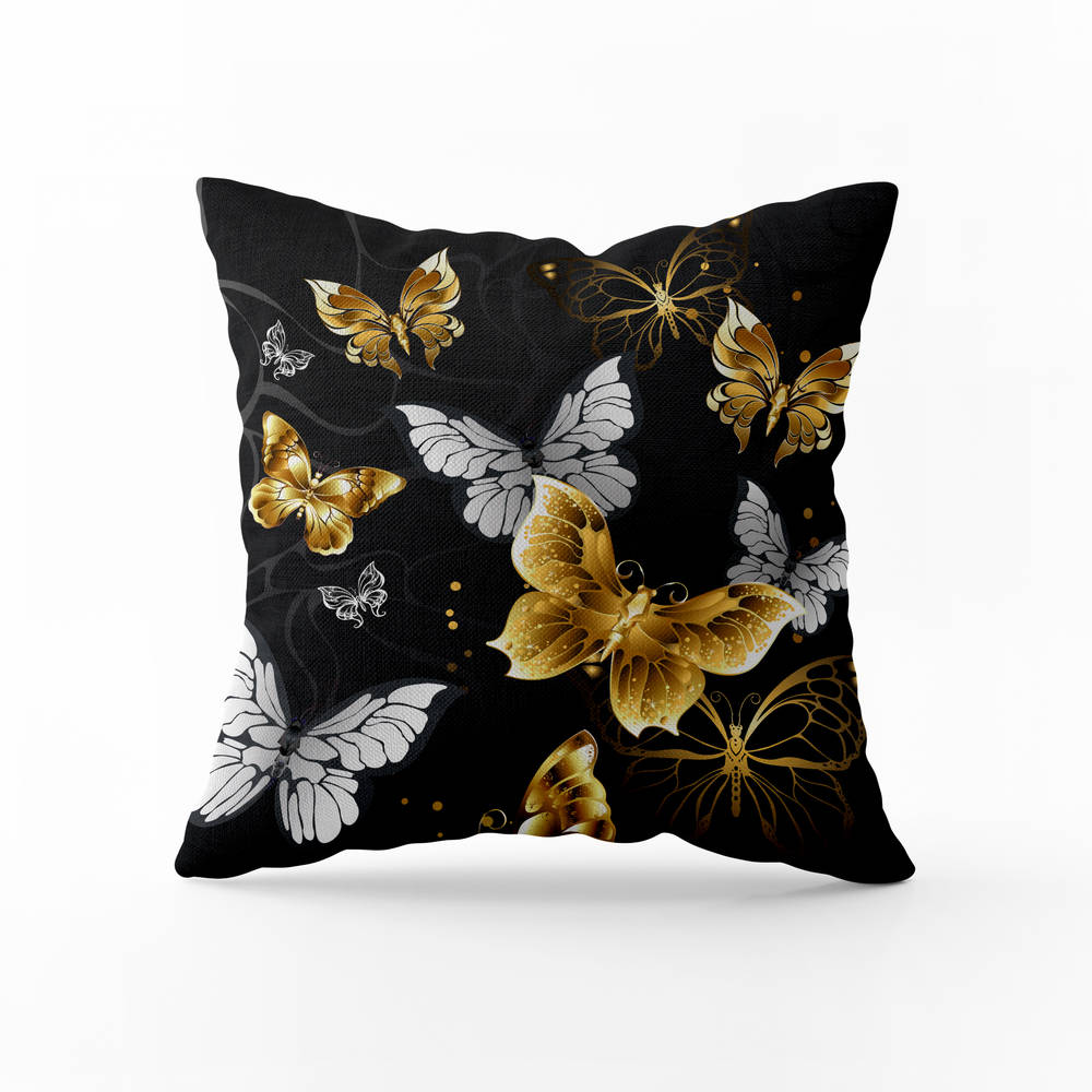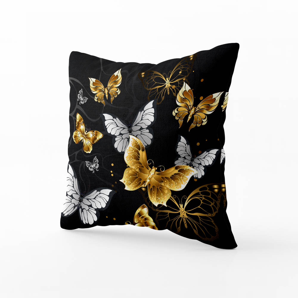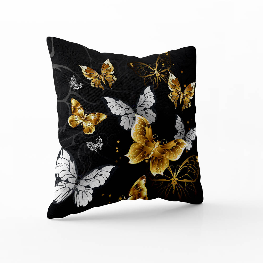 - Dekorační polštář Gold-White Butterflies spojuje jemnost bílých a zlatých motýlů v luxusním kontrastu, který ozdobí váš interiér.