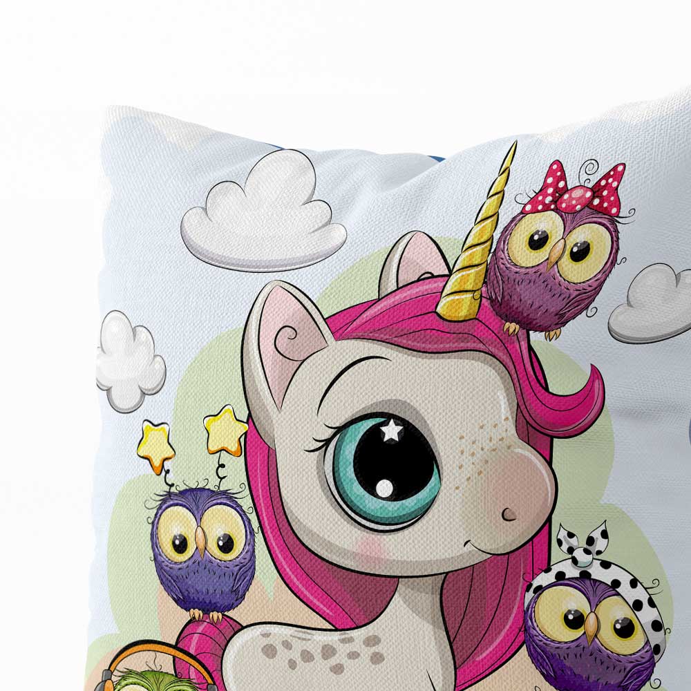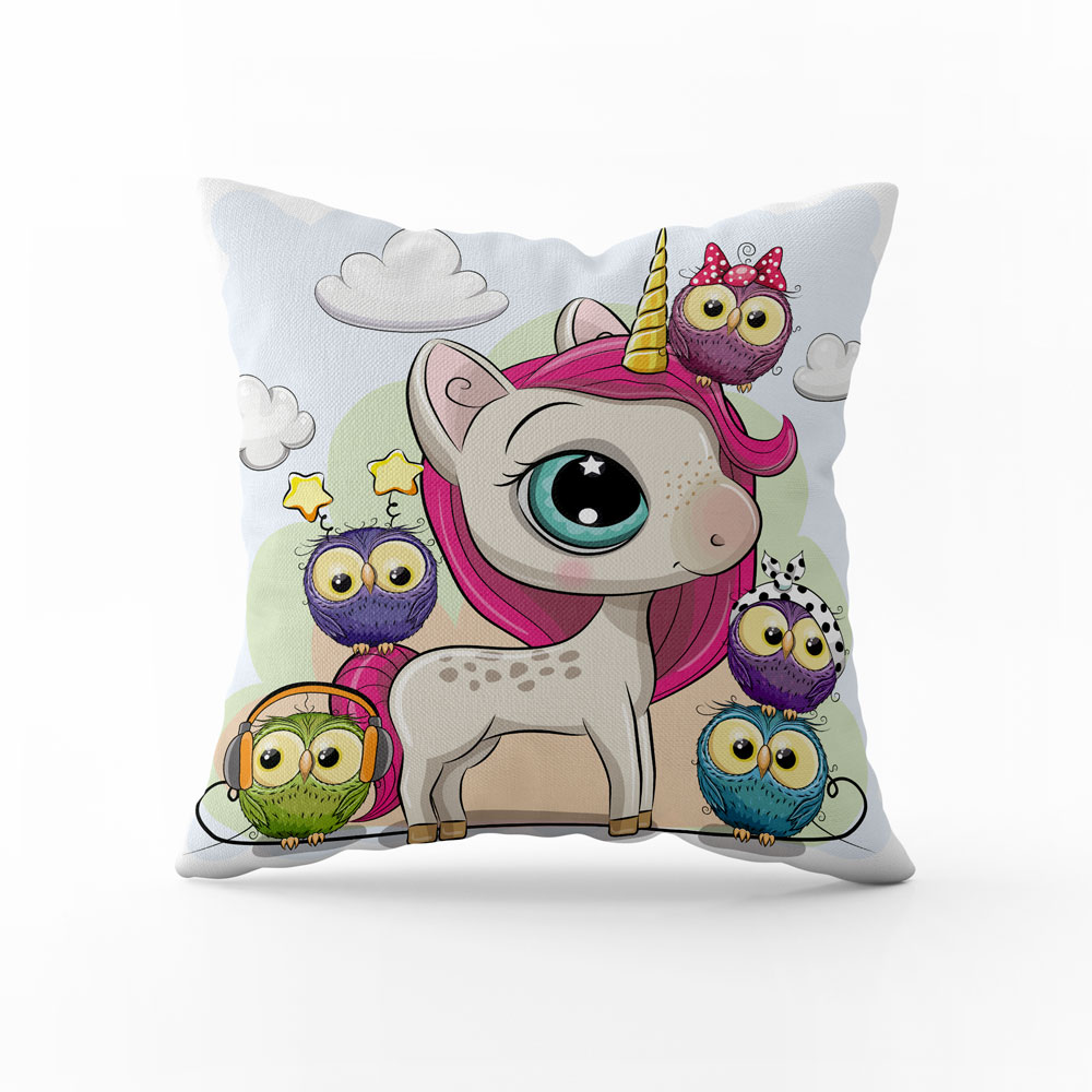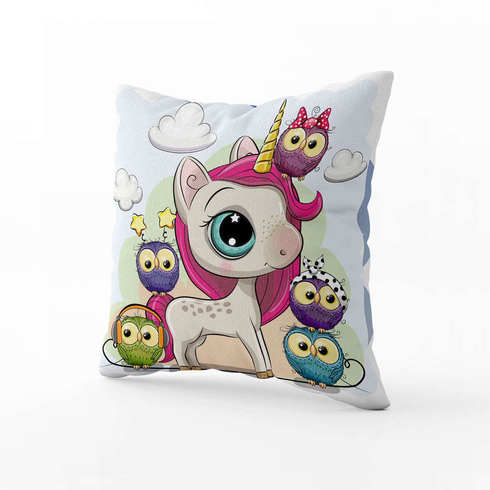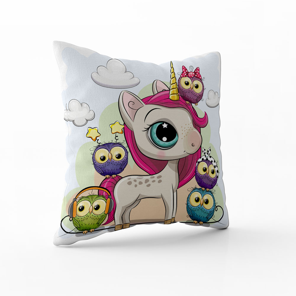 - Dekorační polštář Jednorožec a sovičky vnese do pokoje pohádkovou atmosféru, radost a fantazii, která ozdobí dětský interiér.