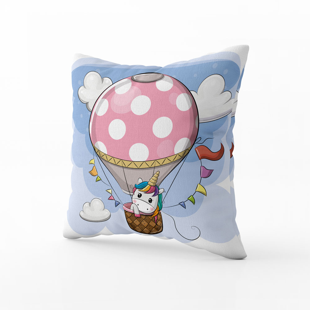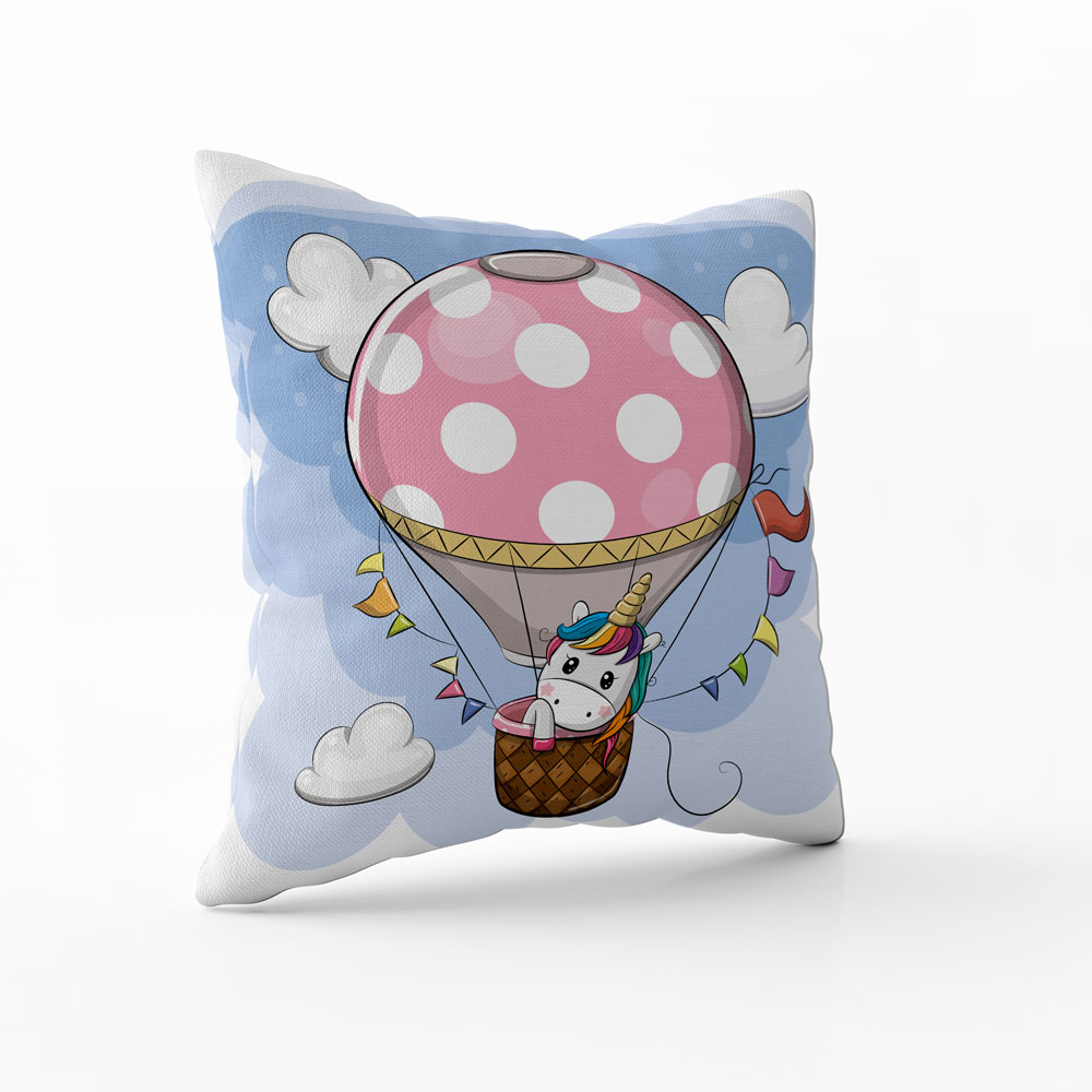 - Dekorační polštář Jednorožec v balónu přináší do pokoje pohádkové dobrodružství, radost a fantazii, která potěší děti.
