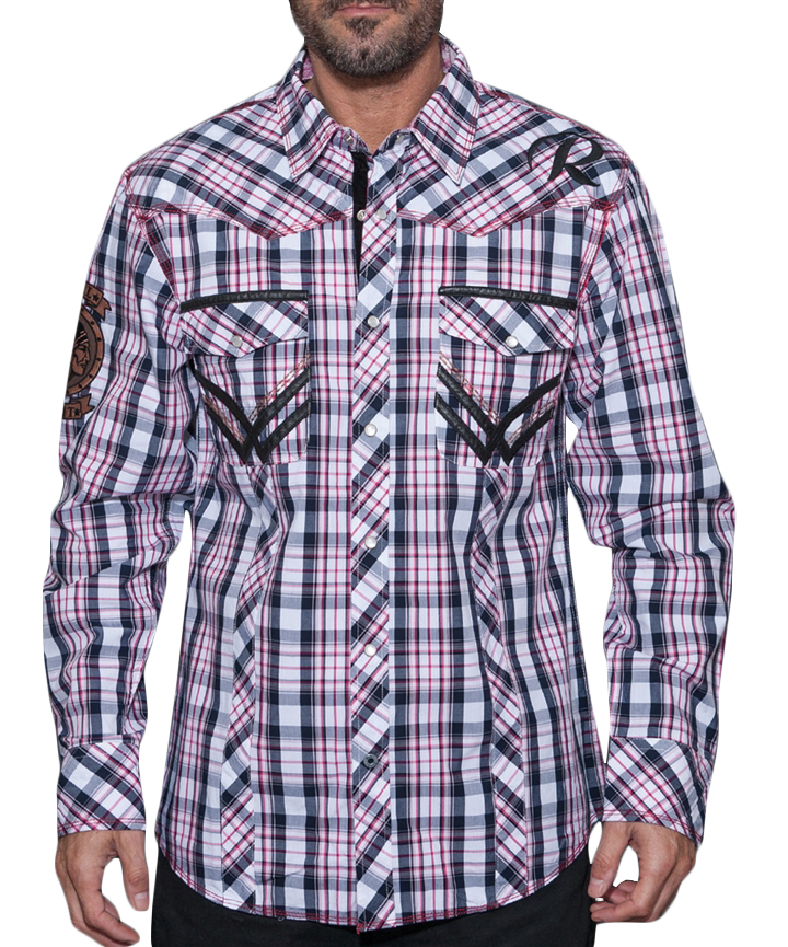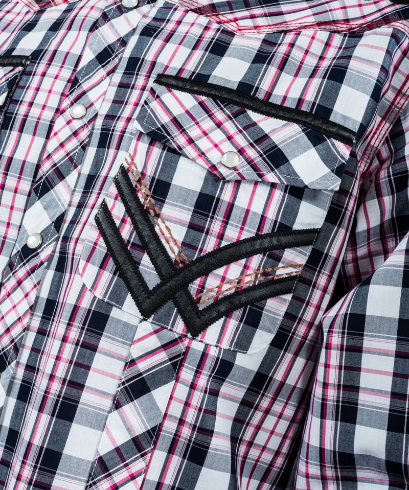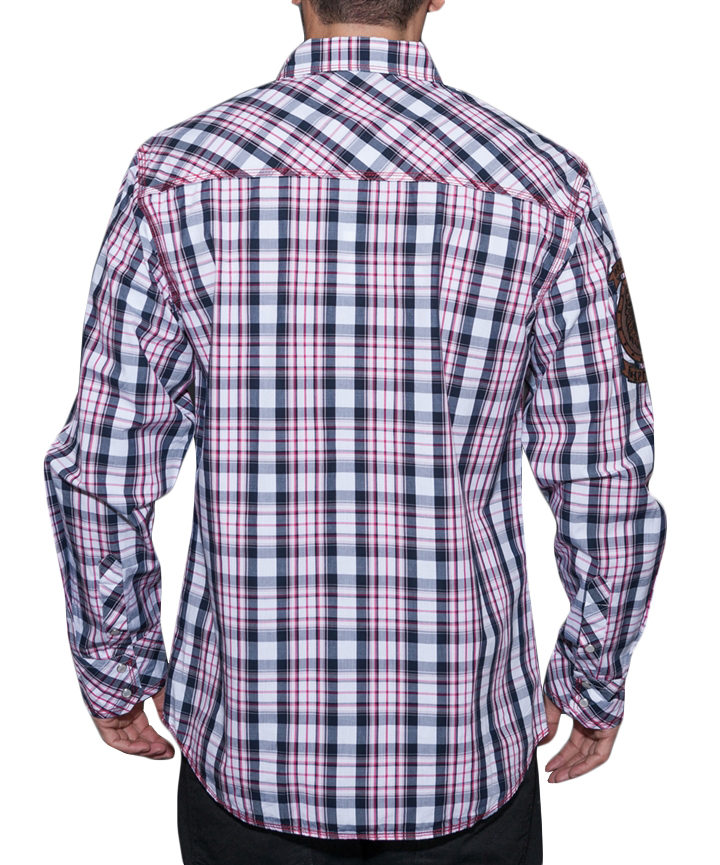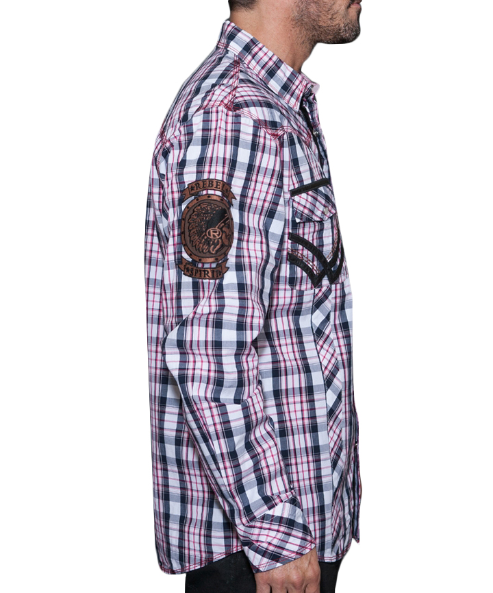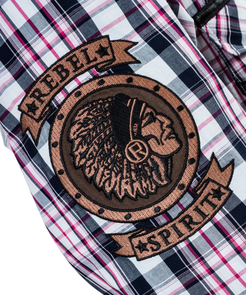 Pánská košile Rebel Spirit kostka Indians. Košile Rebel Spirit je inspirována vojenským stylem, ideální tip na dárek pro muže, bojovníka, který se zajímá o military. Kostkovaná košile – bílá, černá, purpurová. Purpurová je ozdobná barva – na švech, nitích, proužcích.